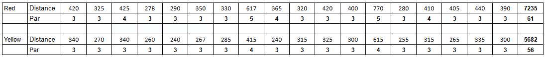 As of today, my personal data for the South Hills “Yellow” consists of only 2 recorded, rated rounds where I have accurate statistics for each hole. This is the summary data:
