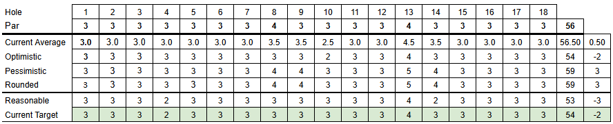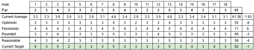 Current Target What I would *like* to score on this hole (usually, but not always, the same as the "Reasonable" score above.)