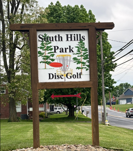 The South Hills Disc Golf Course is a beautiful, well-maintained park-style course. Many of the fairways offer multiple lines to the greens, which are often well guarded. While there are a few “tunnel-like” fairways. most of the course is open. Its true challenge for me is the fact that there are not may scoring opportunities for someone with a sub-300’ arm. The shorter (Yellow) layout has an abundance of sub-300’ fairways, only 2 can be reached with a “less-than-perfect” shot. On the longer (Red) layout, there is only 1. Even if you include the “soft” par-4 9th and 15th holes, and the “soft” par-5 8th hole, the only hole that you can get by with an “average” shot is hole 4.
